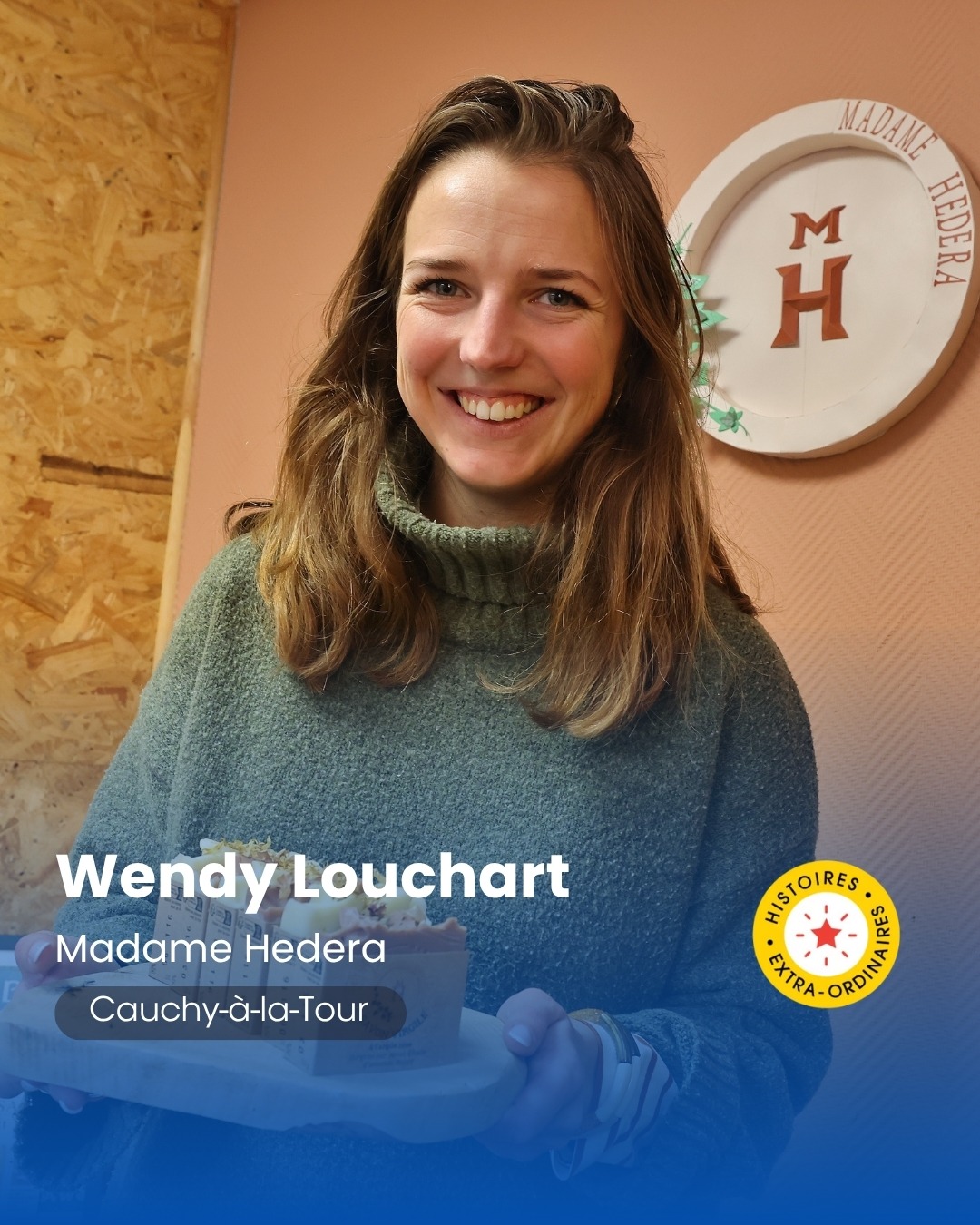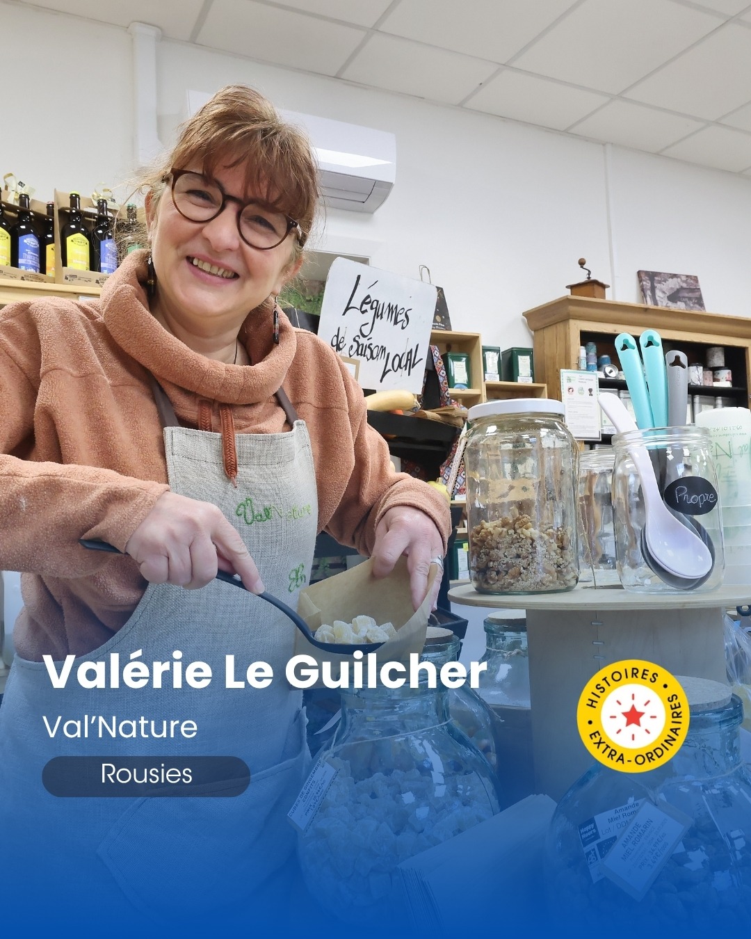 Portrait de Marie Collette, fondatrice de Graines de citoyens à Marcq en Baroeul, tenant des cahiers pédagogiques dans ses mains, au sein d'une librairie.