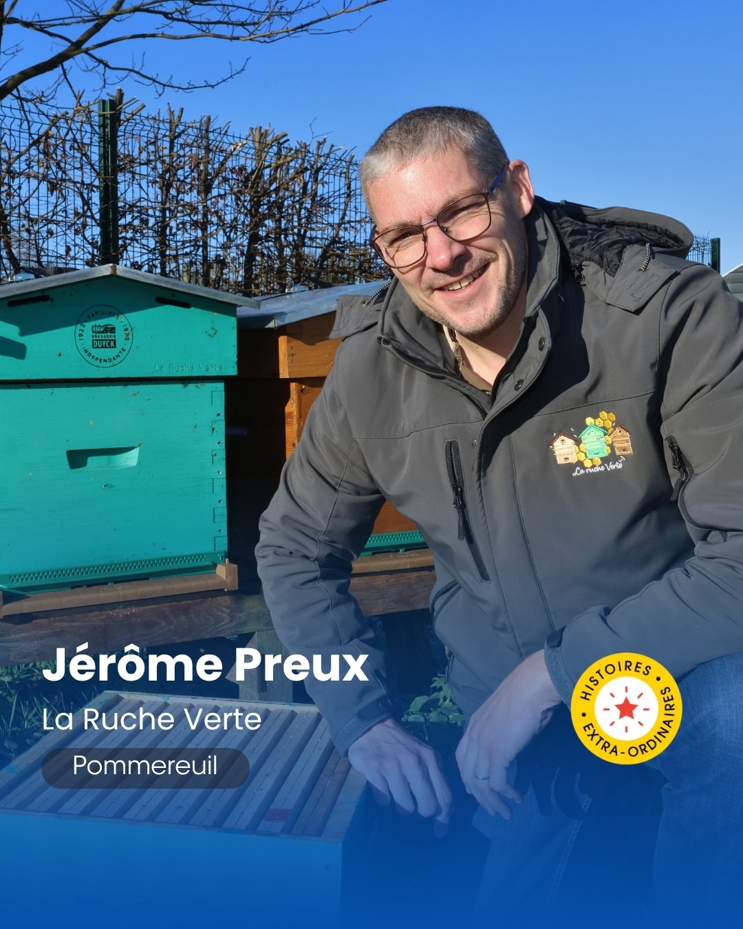 Portrait de Goeffrey Szczepanski, le fondateur de Jardi'Escaut à Vieux Condé devant son véhicule d'entreprise